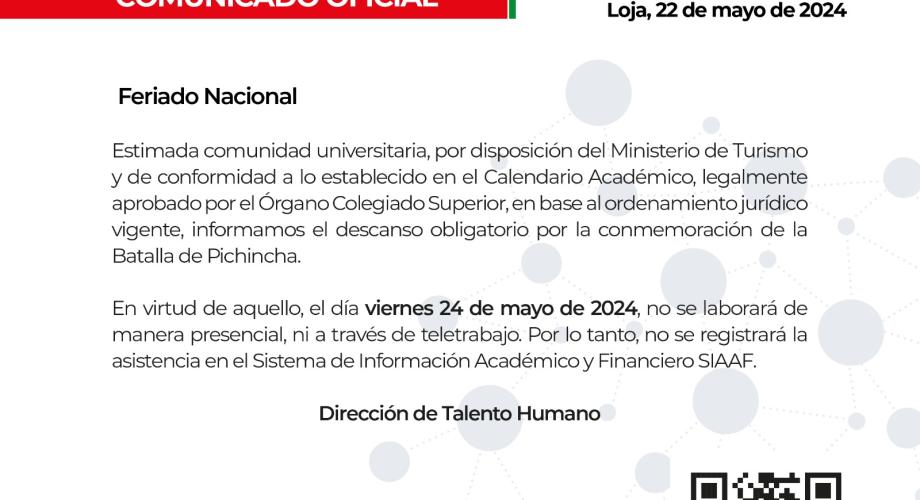 Comunicado Oficial | Feriado Nacional por la Batalla de Pichincha