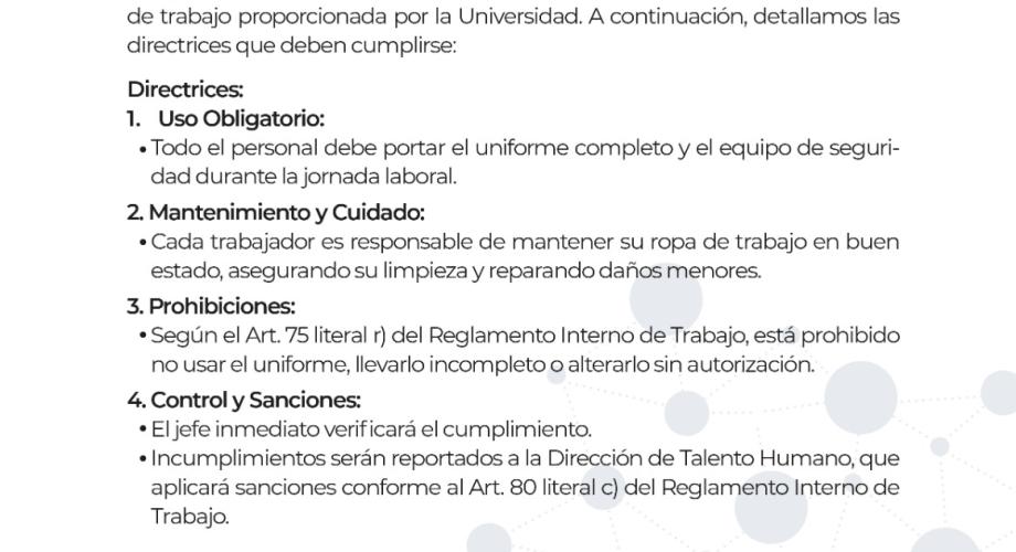 Comunicado Oficial Nro. 042 | Buen uso de la ropa de trabajo