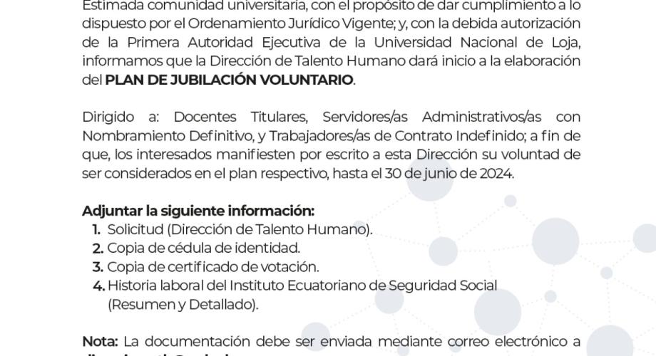 Comunicado Oficial |Plan Anual de Jubilación Voluntaria