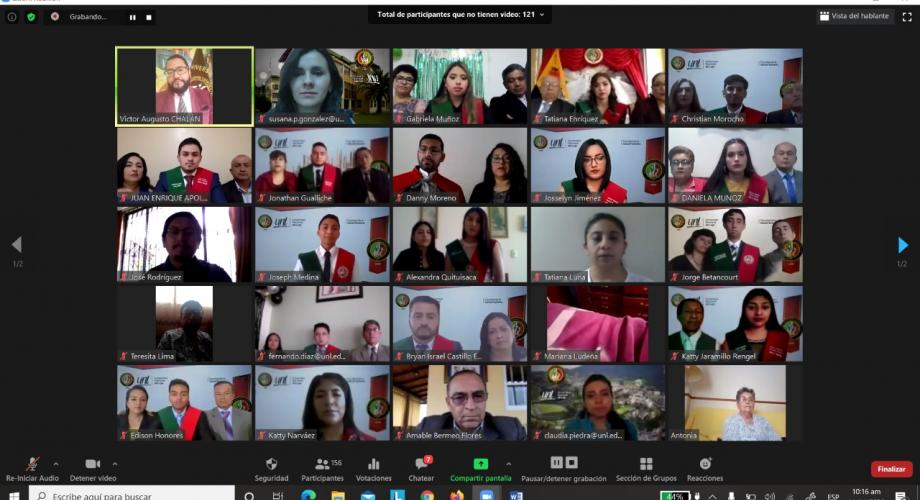 La Universidad Nacional de Loja (UNL) a través de la carrera de Odontología tuvo el honor de incorporar a 22 nuevos profesionales en esa especialidad, mediante ceremonia de graduación virtual por la plataforma Zoom.