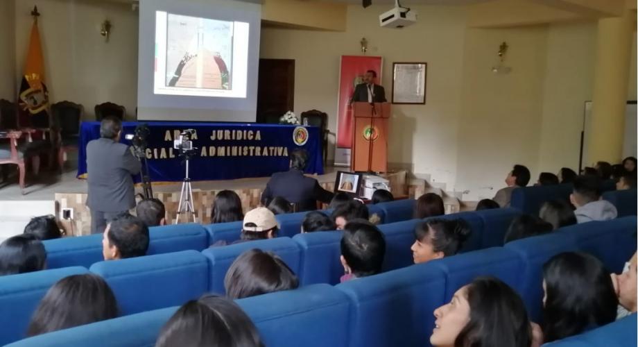 El 12 de febrero, en el Aula Magna Nro. 1 de la Facultad Jurídica, Social y Administrativa, la carrera de Administración de Empresas organizó el Conversatorio: Empresa y Sostenibilidad Ambiental. El Ing. Juan Encalada, gestor académico, mencionó en el acto la intención de este evento.