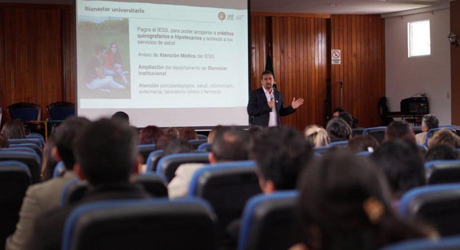 62 proyectos de investigación, 12 de vinculación con la sociedad y 134 publicaciones fueron parte de los indicadores expuestos a la planta docente por parte de Nikolay Aguirre. A esto se suma el nivel de confianza que ha ganado la UNL en el año cinco meses de gestión de la actual administración, demostrada en el incremento de 6.659 estudiantes (en el 2016) a 11.153 en la actualidad.