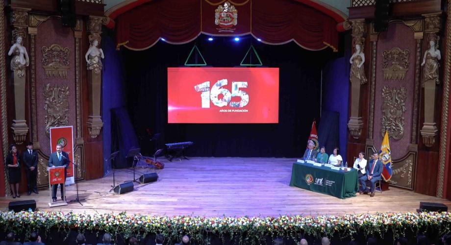 Con el anuncio de la oferta de dos nuevas carreras -en modalidad presencial-, tres programas de doctorado Ph.D., y el incremento de cupos -en modalidad en línea-, la Universidad Nacional de Loja (UNL) conmemoró sus 165 años de fundación a través de una sesión solemne en la que además entregó reconocimientos a estudiantes, docentes y personal destacado de la Alma Máter lojana, la segunda universidad más antigua del país.