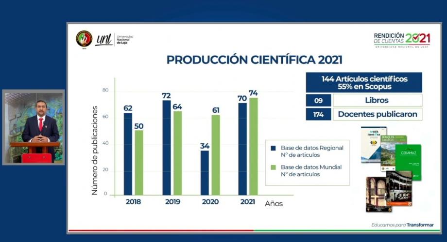 La Universidad Nacional de Loja (UNL) presentó su informe de Rendición de Cuentas 2021, a través de un evento online desarrollado a las 10h00 del viernes 18 de marzo, donde se evidenció el proceso de transformación que vive la universidad pública lojana.