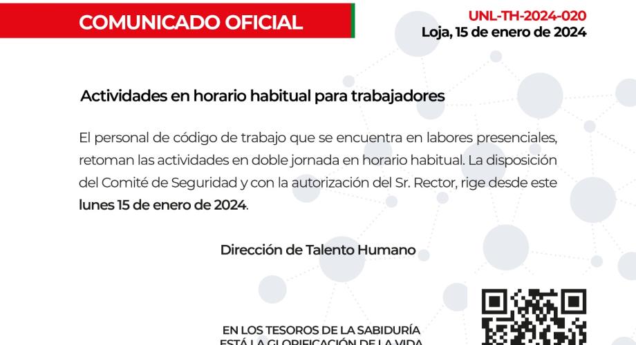 Comunicado Oficial Actividades en horario habitual para trabajadores