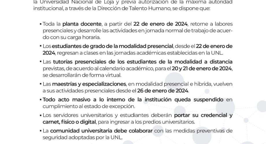 Comunicado Oficial Disposiciones para el desarrollo de actividades académicas en la UNL