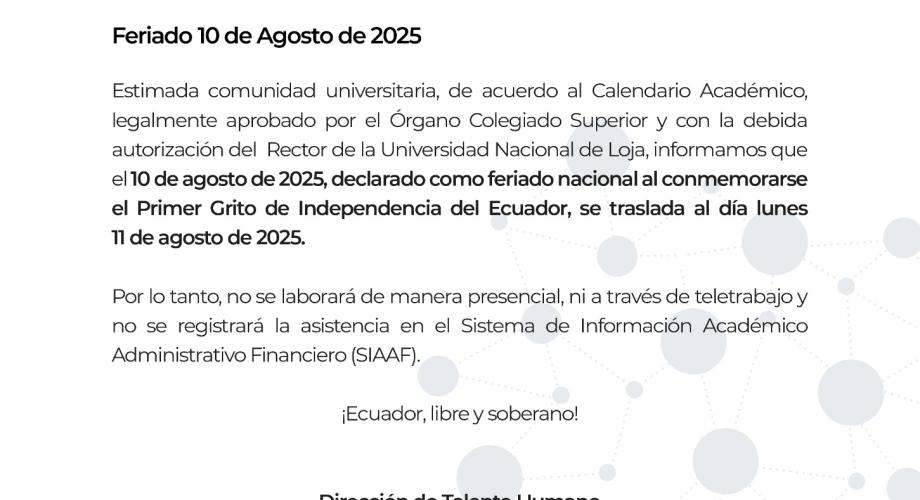 Comunicado Oficial Nro. 053 | FERIADO 10 DE AGOSTO 2025