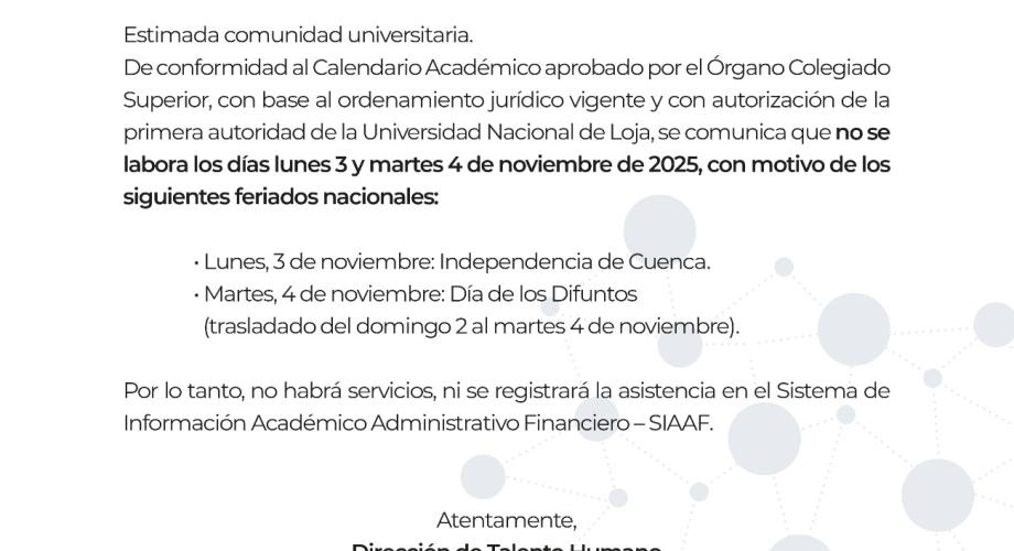 Comunicado Oficial Nro. 057 | Feriado 03 y 04 de noviembre de 2025