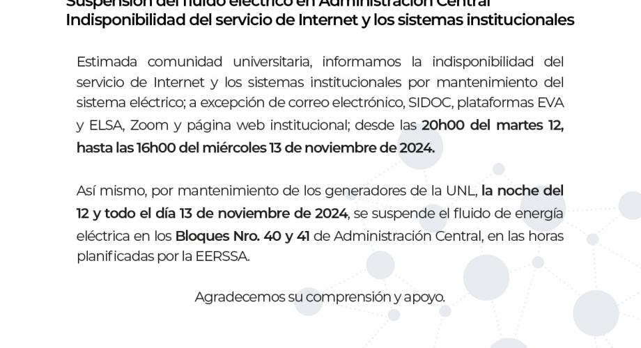 Comunicado Oficial|Suspensión del fluido eléctrico en Administración Central