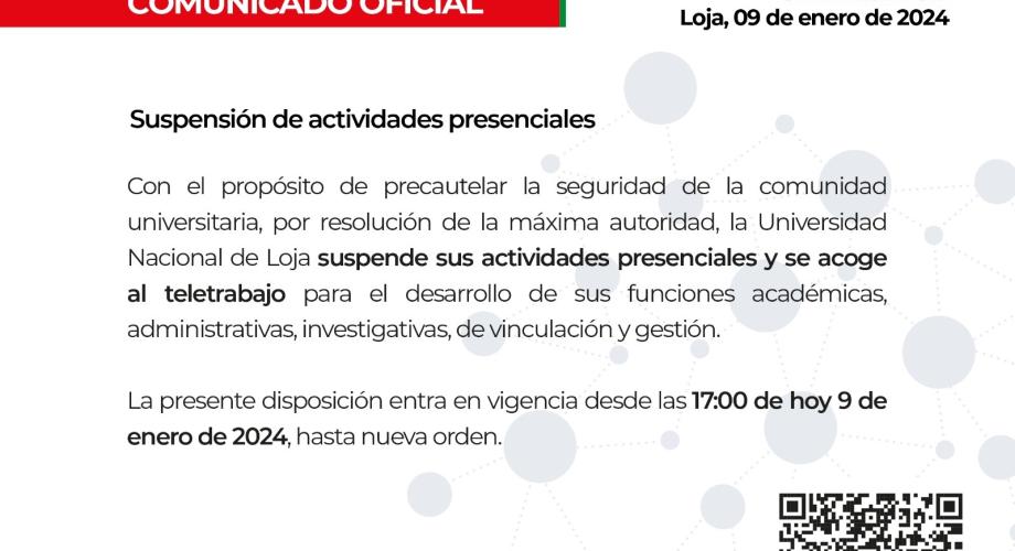 Comunicado Oficial Suspensión de actividades presenciales