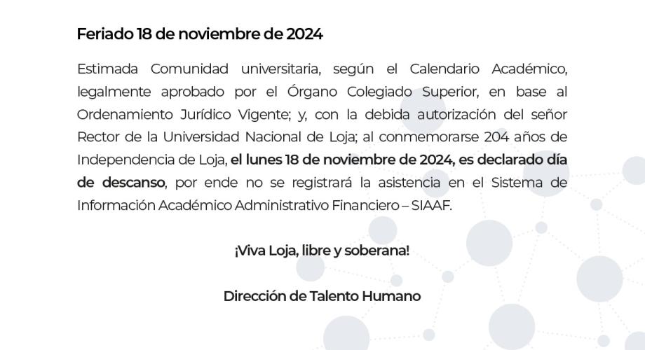 Comunicado Oficial |Feriado 18 de Noviembre de 2024