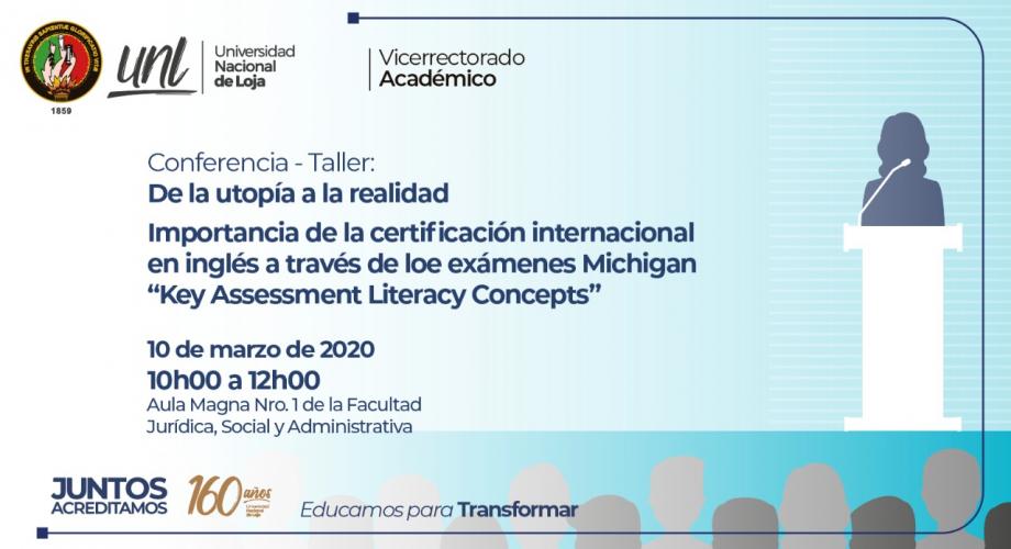 Para contribuir con el fortalecimiento de la misión y visión universitarias, el Vicerrectorado Académico invita a la comunidad universitaria a la Conferencia - Taller: De la utopía a la realidad, misma que será dictada por destacados profesionales de la Universidad de Michigan y de la Universidad Penn State, ambas instituciones provenientes de los Estados Unidos.