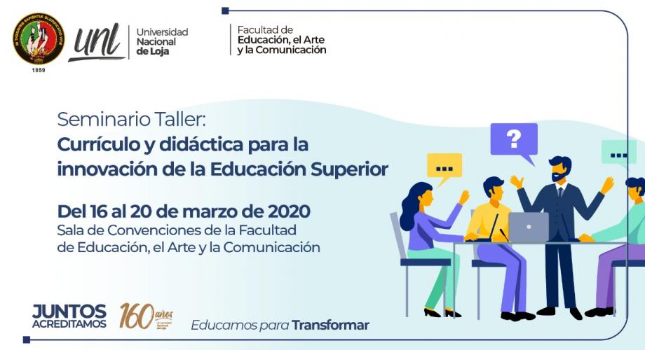 La Facultad de Educación, el Arte y la Comunicación invita a todos los docentes de esta unidad académica, a participar en el Seminario taller: Currículo y Didáctica para la Innovación de la Educación Superior.