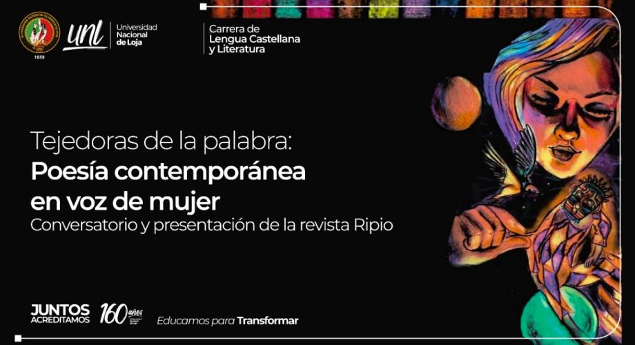 La carrera de Lengua y Literatura invita a la comunidad universitaria y ciudadanía en general, al conversatorio Tejedoras de la palabra: Poesía contemporánea en voz de mujer. En este evento se realizará la presentación de la revista Ripio.