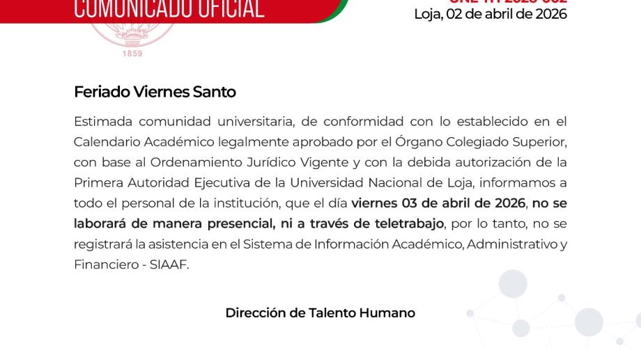 Comunicado Oficial Nro. 02 | Feriado Viernes Santo