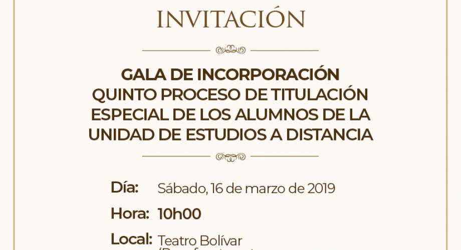 Te invitamos a la graducación de 150 alumnos de las ocho carreras de la Unidad de Educación a Distancia.El acto se realizará en el Teatro Bolívar a las 10h00.