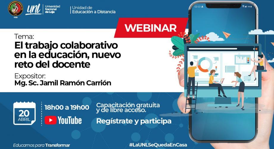 Los procesos de transformación de la Educación Superior, están asociados con el concepto de colectividad y colaboración. Es por esto que la Unidad de Educación a Distancia te invita a este webinar gratuito para puntualizar los componentes de la colaboración entre docentes, así como los medios que la facilitan y su impacto en los procesos de enseñanza - aprendizaje.