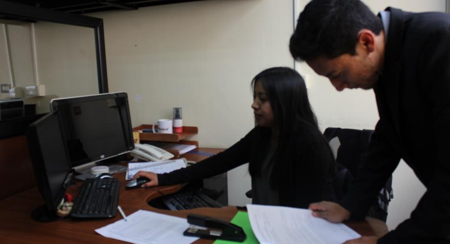Thalía Cumba y Carlos Ochoa, son jóvenes estudiantes de Electrónica y Telecomunicaciones que se benefician de este convenio y que actualmente se encuentran ejecutando su proyecto de tesis en esta casa de salud.