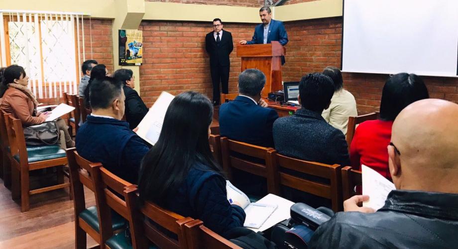 Nikolay Aguirre, rector de nuestra alma máter, realizó la apertura del evento haciendo un llamado de unidad y trabajo en equipo, para cumplir los estándares del modelo de Evaluación y Acreditación 2019.