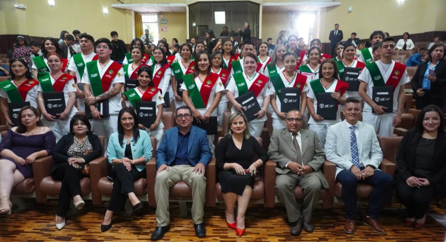 Jennifer Alexandra Paccha, en representación de los estudiantes, describió su experiencia en este proceso de formación. “Esto es el resultado de muchas horas de estudio, grandes esfuerzos y el amor de nuestros padres y familiares, del acompañamiento y apoyo de nuestros amigos, el constante deseo de superación y la determinación diaria para salir adelante y dejar nuestra zona de confort”, concluyó.