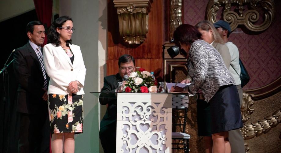 Aurita Gonzaga, presidenta del Tribunal General Electoral, en el acto de posesión al nuevo OCS período 2019- 2021 deseó éxitos a cada uno e indicó que las actividades de los representantes del OCS estén encaminadas a legislar como lo dispone la Constitución de la República del Ecuador, entre otras leyes que rigen la educación superior.